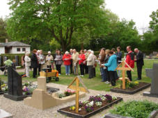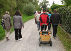 Emmausgang 2014 mit Adolph KolpingEin alter Brauch der Kolpingsfamilie Forchheim ist der Emmausgang am Ostermontag. Am 21.04.14 traf sich eine Gruppe unserer Kolpingsfamilie um 14:00 Uhr in der Lamm-Gottes-Kapelle im Seniorenzentrum St. Martin in Rheinstetten. Dieses Jahr war ein besonderes Highlight die Teilnahme von Adolph Kolping in Form einer Büste unseres Gesellenvaters im Rahmen seiner Rundreise „Kolping On Tour“.Vom Seniorenzentrum führte uns der Weg zum Friedhof zu einem Besuch bei unseren Verstorbenen – Kolping mitten unter uns, gut aufgehoben in einem Bollerwagen. Weiter ging es zur Pfarrkirche St. Martin. Dort gestalteten wir eine Andacht. Für die jungen Gäste gab es unterwegs noch kleine Überraschungen. Der Osterhase hatte viele kleine Geschenke im Umfeld versteckt. Zum Abschluss kamen wir im Josefsheim zusammen bei Getränken und Kuchen. Adolph Kolping hat sich wohl gefühlt bei uns. Er freut sich schon auf seinen nächsten Einsatz.